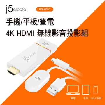 j5create JVAW76 手機/平板/筆電 4K HDMI無線影音簡報投影組 iPhone iPad Miracast Chromecast