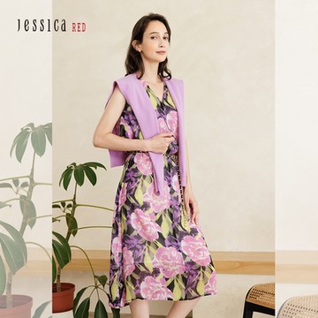 JESSICA RED - 氣質亮眼滿版印花V領無袖洋裝823173