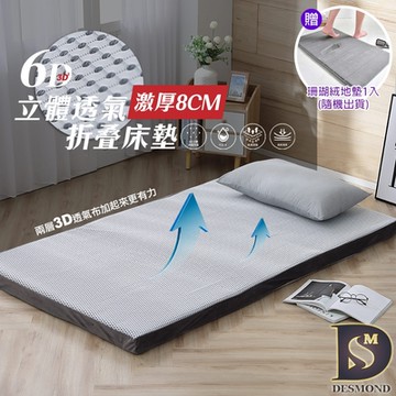 岱思夢 6D立體透氣8公分折疊床墊 單人加大3.5尺 摺疊床墊 學生床墊 日式床墊 贈珊瑚絨地墊1入