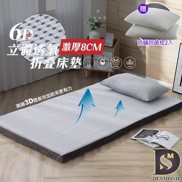岱思夢 6D立體透氣8公分折疊床墊 宿舍單人3尺 摺疊床墊 學生床墊 日式床墊 贈防蹣抗菌枕1入