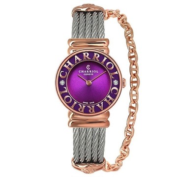 CHARRIOL夏利豪 (ST30PCD3560033) ST-tropez系列字母雕刻玫瑰金鋼索腕錶/紫面 30mm