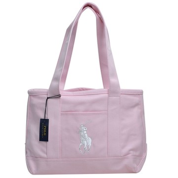 POLO Ralph Lauren 經典大馬LOGO圖騰刺繡中型肩背托特包(粉紅/白馬)