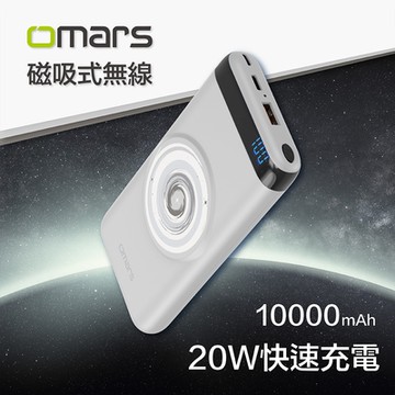 omars|20W磁吸式無線行動電源PD+QC3.0快充10000mAh(月球白)