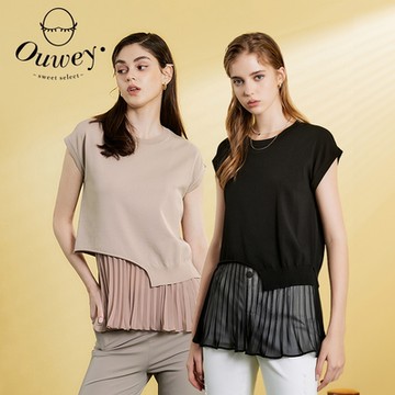 OUWEY歐薇 時尚連袖針織壓褶下擺兩件套(兩色;S-L)3222085527