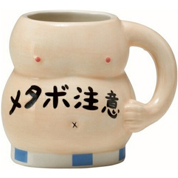 日本SUN ART有趣味設計啤酒肚馬克杯SAN1975注意代謝症候群(陶瓷;容量400cc;可微波爐)水杯咖啡杯子