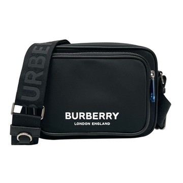 BUREBRRY 白標字LOGO壓印織帶尼龍男斜背方包(黑色)