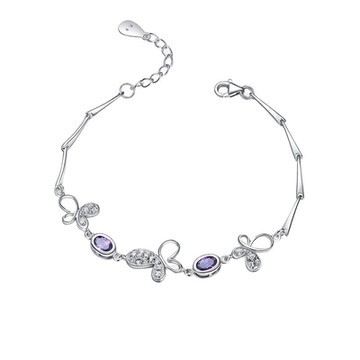 [米蘭精品] 925純銀手鍊鋯石手鏈-蝶戀花蝴蝶閃耀時尚七夕情人節生日禮物女飾品73zv8