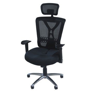 E-home 季風網布頭枕高背扶手電腦椅-黑色黑色