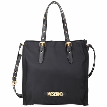 MOSCHINO 金字尼龍手提/斜背托特包(黑色)