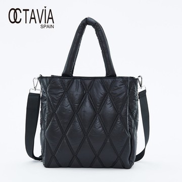 OCTAVIA8 - 太空 三層菱格鋪棉A4肩背包 - 忙碌黑