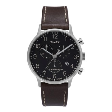 TIMEX 型男日誌計時皮帶腕錶-銀X咖啡-TW2T28200-40mm