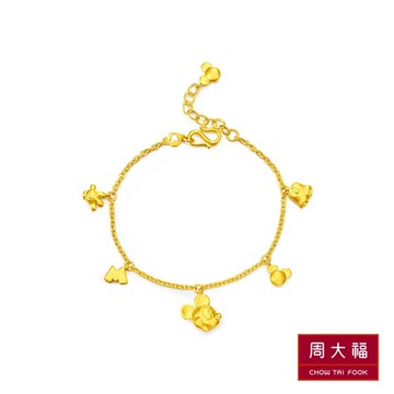 周大福 迪士尼經典系列米奇黃金手鍊(鍊長16.25cm)