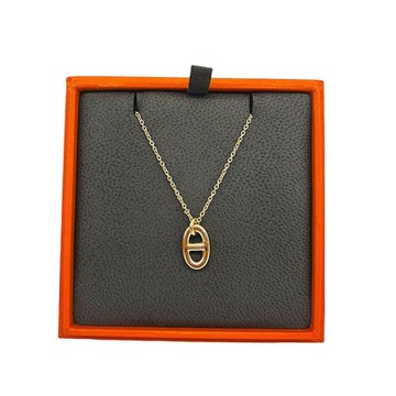 HERMES愛馬仕 Mini Maillon項鍊(淺栗灰金) (H100053FE55)