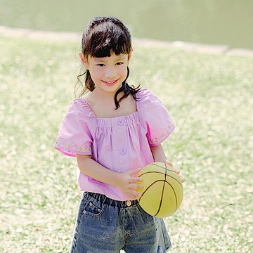 OB嚴選-親子系列~高含棉彈性方領小花刺繡上衣