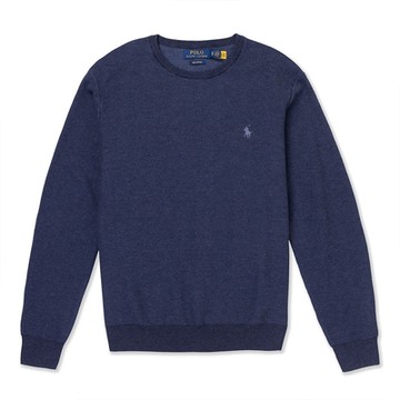 Polo Ralph Lauren RL 熱銷刺繡小馬羊毛針織大學T恤-深藍色
