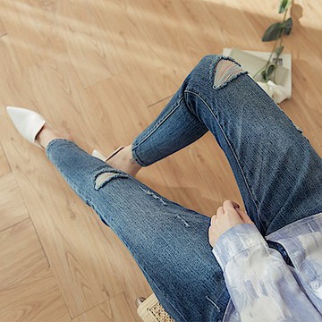 割破刷色牛仔寬褲-藍【KT201417】-1色