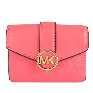 MICHAEL KORS Carmen 金字大圓標Logo防刮皮革三折式短夾(葡萄柚粉)
