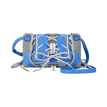 BALENCIAGA 巴黎世家 SNEAKERHEAD刺繡黑字LOGO運動鞋花紋設計釦式斜背包(藍x灰)