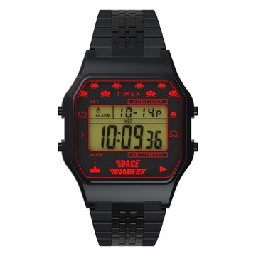 【TIMEX】天美時 x T80 x Space Invaders 伸縮錶帶電子錶 (黑 TXTW2V39900)