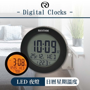 RHYTHM 日本麗聲時計 工業風溫溼度顯示音量調節電子鐘 黑色