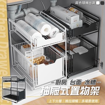 廚房台面水槽抽屜式置物架 抽拉收納架 櫥櫃置物 浴室收納 雙層收納籃
