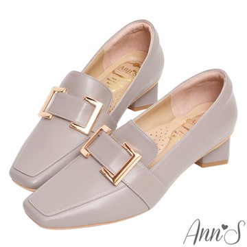 零碼H釦方頭低跟樂福鞋 米白色