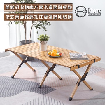 E-home 埃格羅 櫸木野餐露營蛋卷桌 原木色 美觀好收納 120cm 120 x 60 x 44cm