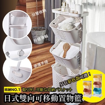 【DaoDi】日式三層髒衣籃滑輪推車 (洗衣籃 /洗衣籃推車/分類洗衣籃/收納架)