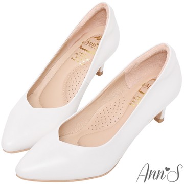 Ann’S舒適療癒系低跟版-V型美腿綿羊皮尖頭跟鞋5.5cm-白(版型偏小)