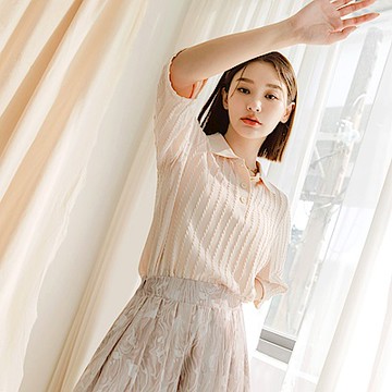 OB嚴選-不易皺翻領拋袖荷葉開襟上衣