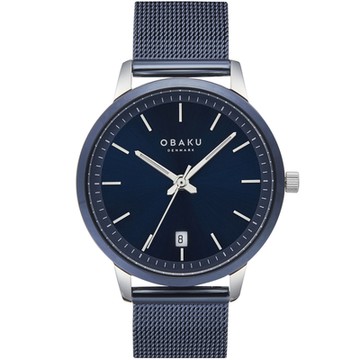 OBAKU 簡約美學紳士米蘭時尚腕錶-銀X藍