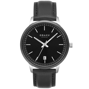 OBAKU 簡約美學紳士皮革時尚腕錶-銀X黑-V270LDAWRB-42mm