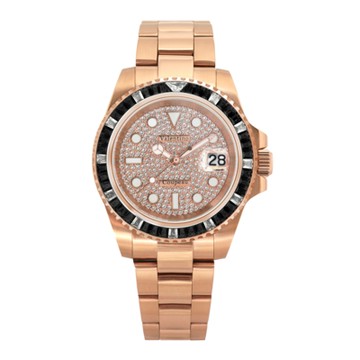 Valentino Coupeau 范倫鐵諾 古柏 滿天星梯鑽水鬼腕錶(玫殻/黑T鑽/鋼帶)