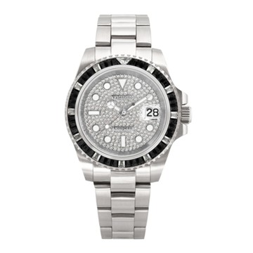 Valentino Coupeau 范倫鐵諾 古柏 滿天星梯鑽水鬼腕錶(銀殻/彩虹鑽/膠帶)