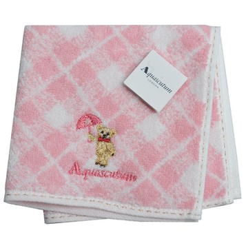 Aquascutum 經典字母品牌LOGO雨傘小熊圖騰刺繡小方巾(粉紅格系)