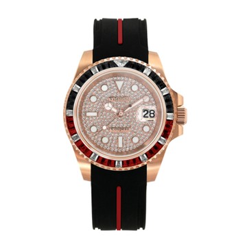 Valentino Coupeau 范倫鐵諾 古柏 滿天星梯鑽水鬼腕錶(玫殻/紅黑鑽/膠帶)