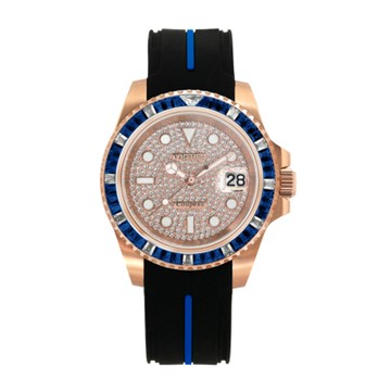 Valentino Coupeau 范倫鐵諾 古柏 滿天星梯鑽水鬼腕錶(玫殻/彩虹鑽/膠帶)