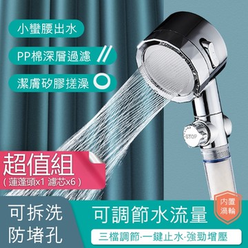 荷生活 極致強力5μm過濾可調節水量螺旋激流三檔美肌蓮蓬頭 淨化美肌組(蓮蓬頭1入+濾芯6入+矽膠美肌環1入)