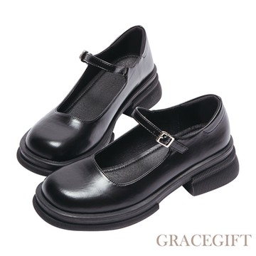 【Grace Gift】個性女孩平底瑪莉珍鞋 黑