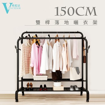 【居家cheaper】加寬150CM大容量雙桿雙層移動式加粗衣架黑色