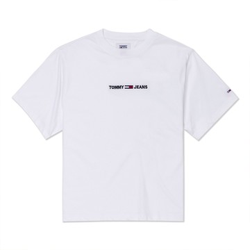 TOMMY 熱銷寬版刺繡文字Logo圖案短袖T恤(女)-白色