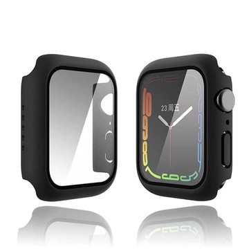 全包覆經典系列 Apple Watch Series 9/8/7 41mm 9H鋼化玻璃貼+錶殼 一體式保護殼(黑色)
