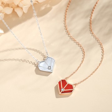 [米蘭精品] 925純銀項鍊鋯石吊墜-摺紙愛心貝母瑪瑙聖誕節情人節生日交換禮物女飾品2色74cj51