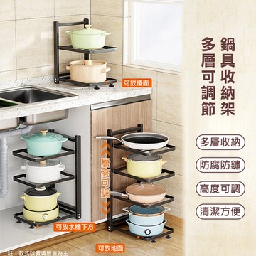 廚房鍋架 多層置物架 下水槽放鍋具架 廚房收納架 廚具收納 不鏽鋼置物架 多功能可調整架子