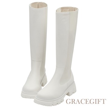 【Grace Gift】唐葳訂製-甜辣時尚切爾西鋸齒長靴 米白