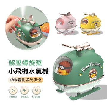 桌面卡通小飛機噴霧水氧機 霧化補水加濕器 空氣清淨機 氛圍燈 300ML