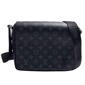 LV Louis Vuitton路易威登 M46255 DISTRICT PM系列Eclipse帆布拉鍊斜背信差包(黑)