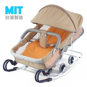YBL 台灣製造MIT 坐躺兩用雙管加寬型彈搖床(附蚊帳)-粉橘色