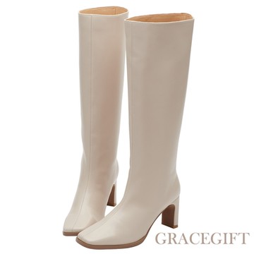 【Grace Gift】rather聯名-率性感俐落高跟長靴 米白
