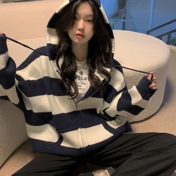 條紋披肩毛衣兩件套-杏【KT24569】
